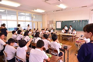 今日の学校の様子です。今日から中学生が職場体験で小学校に着ています。