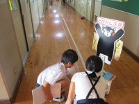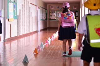 学校の廊下には、生活安全委員会の作成したコーンが有りました。