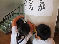 3年生が算数の学習で、校内の様々なところの長さを、巻尺で測る学習をしていました。