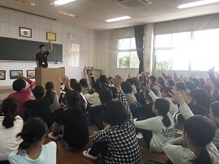 今日は国際理解教育の集会がありました。JICAの飯野さんからスリランカのお話を聞きました。