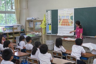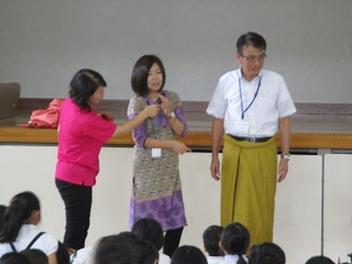今日は国際理解教育の集会がありました。JICAの飯野さんからスリランカのお話を聞きました。