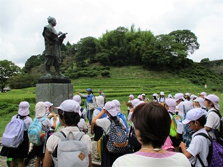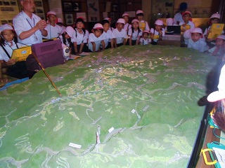 白糸台地についての説明を受けています。一生懸命勉強していますね!