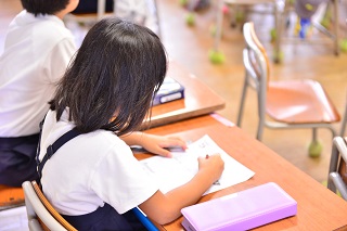 防災教育の手引きを活用し、教室の危険箇所をみんなで考えました。