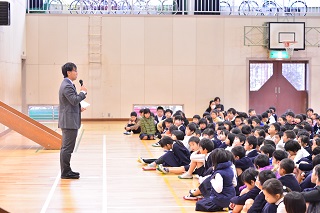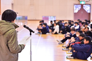 校長先生からのお話では、「大津小学校みんなが安心して楽しく過ごせる学校になるように、相手を思いやり、行動の理由を尋ねよう。違いを認め合い行動で返そう」に取り組もうとするお話をしていただきました。