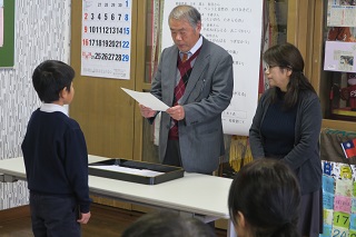 昼休みには「小さな親切」作文コンクールの表彰もありました。
