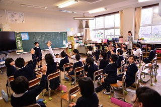 今日は授業参観(学習発表会)も有りました。1年生が張り切って発表しています。