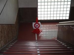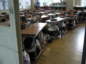 校舎内で壁や天井が崩れてしまった場合を想定し、避難経路を変更しながら移動をしました。
