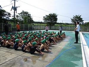 プール開きがありました。大好きなプールを楽しむためにも、事故を起こさないように命の大切さを学びました。