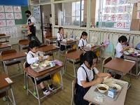 学校が再開し、1年生にとっては初めての給食がありました。給食中は感染予防のためおしゃべりはできませんでしたが、おいしそうにカレーを口に運んでいました。給食後には「おいしかった」と「次も楽しみ」とお話してくれました。