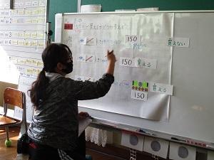 それぞれ値段のついた鉛筆、消しゴムを150円以内で買うための考え方を学習していました。