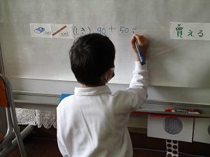 大人は、鉛筆+消しゴムの合計を計算して、150円と比べて「買えるか、買えないか」と考えますが、子どもたちは150円ー鉛筆代を計算し、「○○円残っているから消しゴムは買えそうだ」と考えていました。子どもの発想っておもしろいですね。