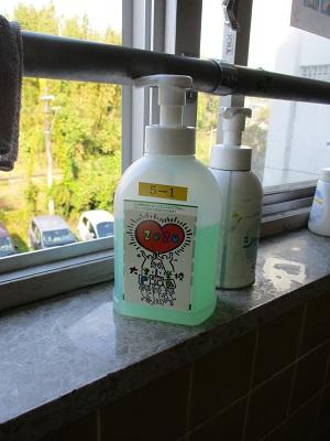 以前PTAから感染予防のためにと液体石けんボトルと液体石けんをいただき、低学年に設置したことをお知らせしましたが、ついに高学年にも設置されました。