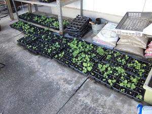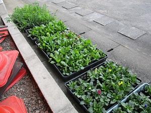 上田健先生、安武節先生、荒木文代先生から、花の苗をたくさんいただきました。キンセンカ、パンジー、デイジー、ビオラ、石竹を全部で340本ほど。実は、春にも同じくらいの苗をいただいています。3人の先生方はいずれも元校長先生。大津小の学習環境がよりいっそう緑豊かなものになるようにと、ご自宅で種から育てられた苗をお持ちいただきました。