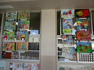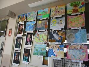 また、読書感想画の入選作品が図書室前に展示されています。本から想像を広げた素敵な絵ばかりでした!