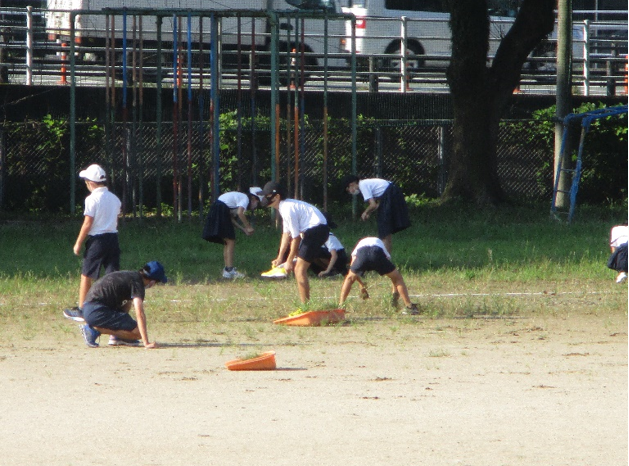 朝からは、6年生がボランティアで運動場の草取りをしてくれています。学校のみんなのために行動する姿が本当に素晴らしいです。感謝の気持ちを持って運動場を使っていきたいですね。