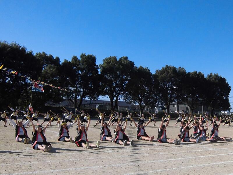 隊形や手の挙げ方などをみんなでそろえています。