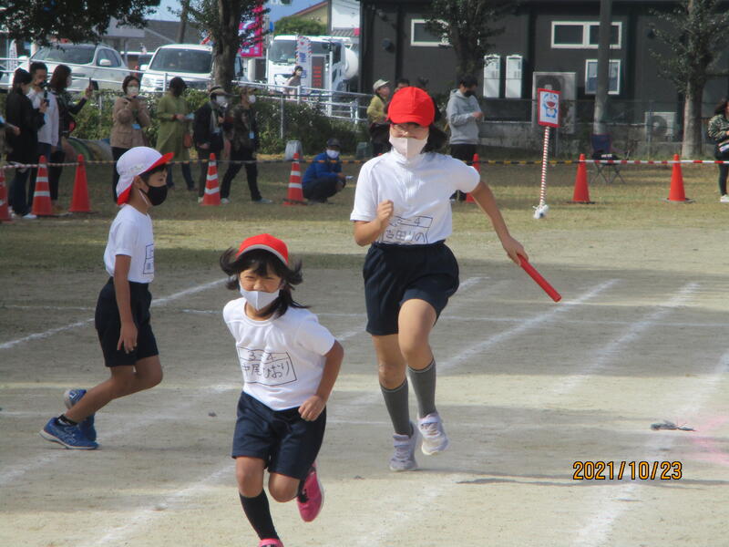 次は、5年生のリレーです。バトンパスがとても上手でした。