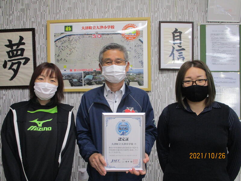 10月8日に日本教育工学協会(JAET)から「学校情報化優良校」の認定証をいただきました。