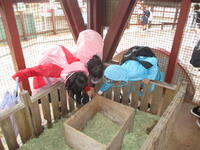 ミルク牧場では、お弁当を食べたあと、その計画に沿って動物を見て回ったりエサをあげたりして動物たちと触れ合いました。