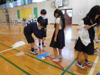 1年生がうまく遊べないときはお手本を見せたり、一緒にやってあげたりしてサポートをします。遊び終わったら折り紙でつくったお土産をプレゼントしていました。