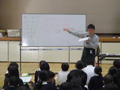 元大津小学校長(現大津町教育長)の吉良智恵美先生を招き、