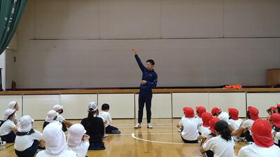 4年生体育「走り高跳び」の学習で、プロの方に指導していただきました。
