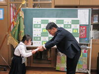 交代式では、校長先生から今年度の児童会役員へ感謝状が渡されました。
