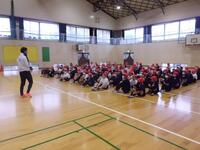 2月29日(木)総合的な学習で大津高校サッカー部70名と交流を行いました。