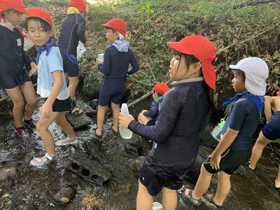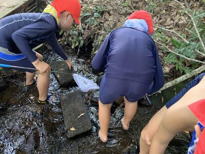 両日とも暑かったこともあり、川に入ると子どもたちは、水の冷たさを喜んでいました。