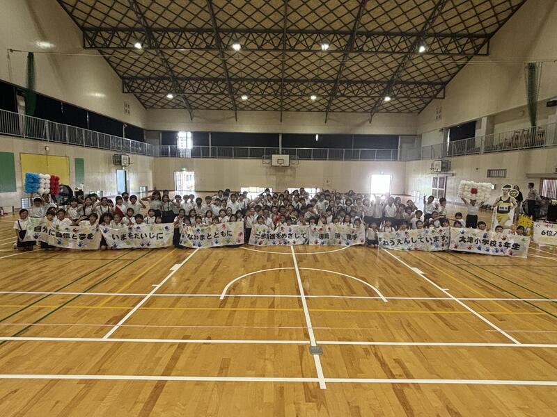 本校出身で、パリオリンピック、男子マラソンで6位入賞を果たした赤﨑暁選手が大津小学校に来校されました。