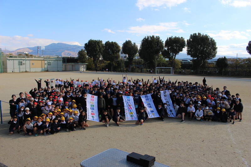 5年生からは、大津高の選手達が全国の舞台で活躍することを願い、思いを込めて作った応援旗をプレゼントしました。
