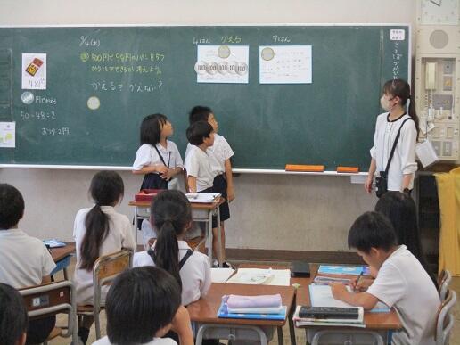 2年生の算数の授業で、初めて小さなホワイトボードを活用しました。