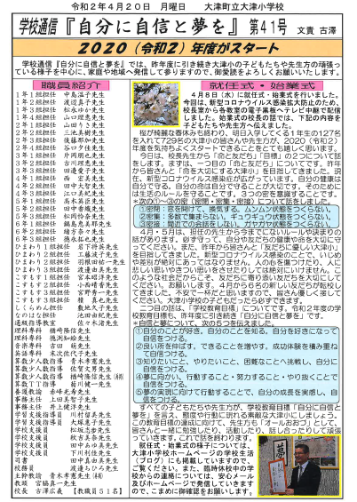 4月21日から予定していました1年生の家庭訪問は、新型コロナウイルス感染症対策に伴う臨時休校に伴い、延期することになりました。