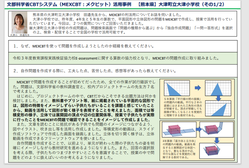 文部科学省CBTシステム(MEXCBT:メクビット)について、本校の取組が文部科学省のホームページで紹介されました。担当の田邉先生のコメント入りです。