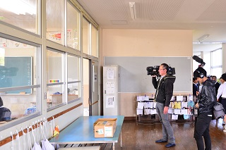 子どもたちにインタビューしています。はきはき答える姿が見られました。