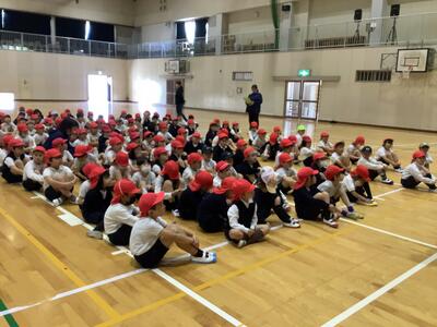 早速、体育の時間でしっかり人の話を聴く姿がありました。人の話を聴くこともえがおで過ごせる一つの要因ですね。