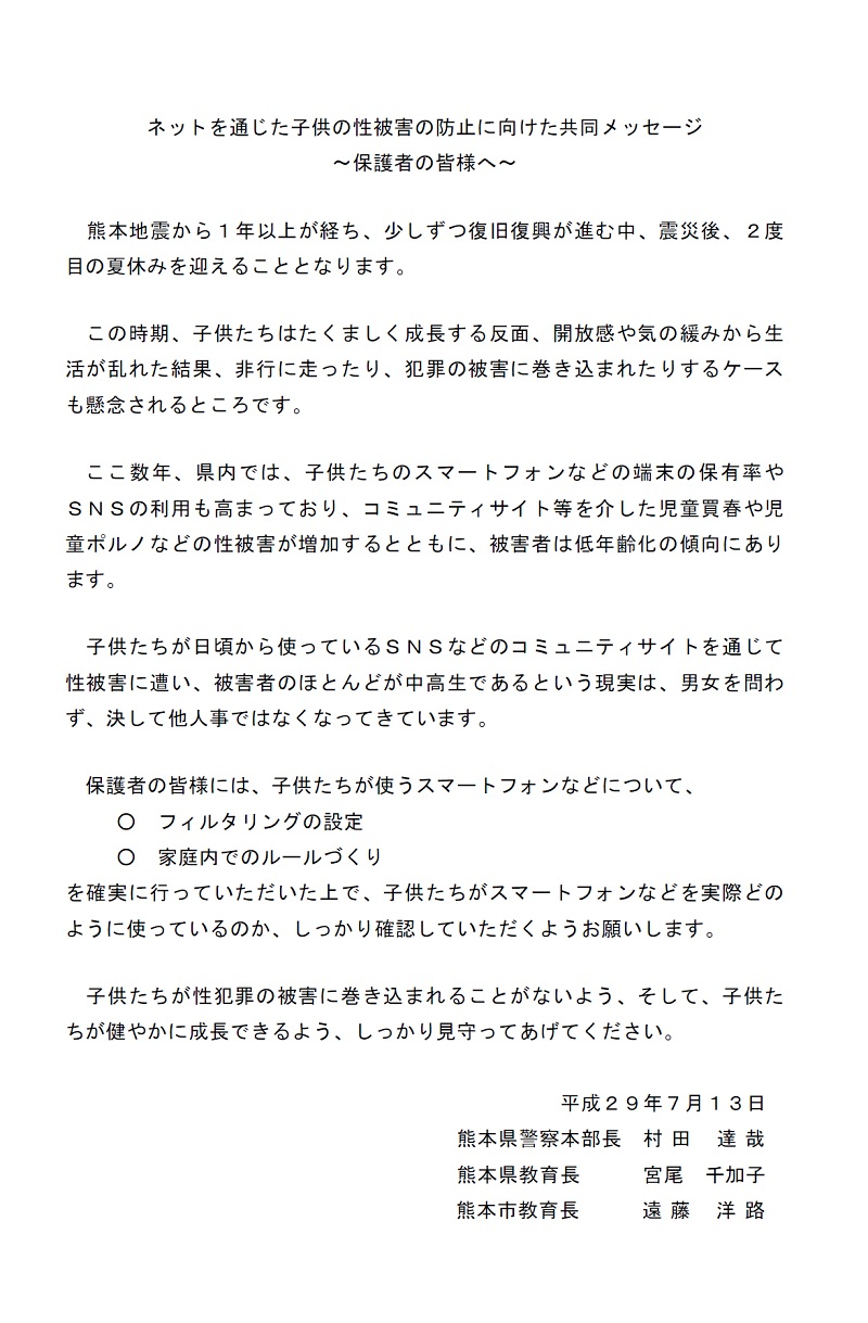 ネットを通じた子供の性被害の防止に向けた共同メッセージ