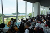 お弁当を食べるときは、天気もよくなり、外で海を見ながら友達同士で食べ、みんな「おいしい」と言っていました。