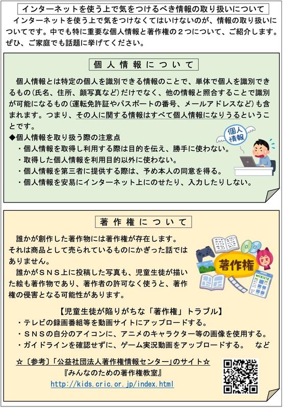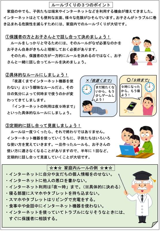 ご家庭でも話題にしていただくとともに、ペアレンタルコントロール等を活用しましょう。