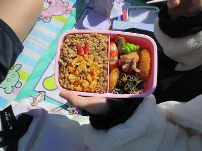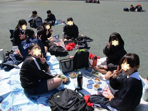 そして、町民グランドでは、青空の下のお弁当タイム(^^)