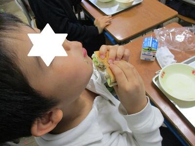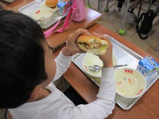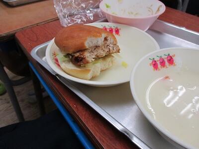 今日,3月6日の給食のメインメニューは、”セルフ照り焼きバーガー”。