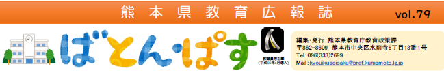 熊本県教育広報誌『ばとんぱす Vol.79』が発行されました。子どもたちの学びや、家庭でも活用できるサービスなど、本誌の中から特に注目したい情報をご紹介します。