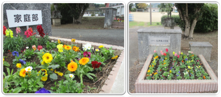 11月8日(土)に、PTA家庭部の皆様が、本校の正門横の花壇を美しく整えてくださいました。おかげさまで、花壇は色とりどりの花で明るく華やかに彩られました。学校の顔である正門が明るくなったことで、登下校する子どもたちや、来校される方々を気持ちよく迎えられるようになりました。東小のシンボルである2体の二宮金次郎像も、きっと笑顔で見守ってくれていることでしょう。また、家庭部の皆様は、お忙しい中、植え付け後も朝夕に水やりに来てくださっています。子どもたちや学校のための温かい心遣いに、心より感謝申し上げます。本当にありがとうございました!