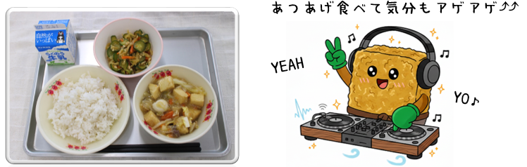 【本日の献立】★1月21日(水):むぎごはん、あつあげの中華煮、大根のピリからあえ、牛乳