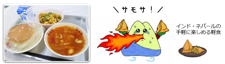 【本日の献立】★2月10日(火):パインパン、トマトスープ、サモサラダ、牛乳