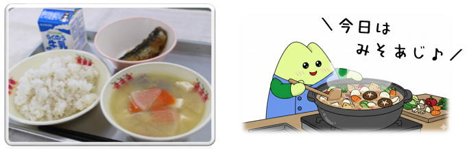今日は、人気の「キムタクごはん」が登場しました! 味の決め手となる「みそ」や「しょうゆ」の原料である大豆は、日本の主食である「米」と栄養面で非常に相性が良く、お互いに不足する栄養素を補い合う「ベストコンビ」と言われています。みそちゃんこじるについては、放送当番さんより「肉団子が汁をたっぷりすっていて美味しかったです」とコメントが届きました。旨味たっぷりのおかずとごはんをしっかり食べて、今週も元気にスタートしましょう\(^_^)/