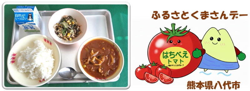 今日は、熊本の恵みがたっぷり詰まった献立です。「はちべえトマト」は、熊本県八代地域で作られている有名なブランドトマトです。冬から春にかけて収穫される「冬春トマト」で、甘みと酸味のバランスが抜群!今日はそのトマトを贅沢に使って、コクのあるハヤシライスに仕上げました。もりもり食べて、明日の授業参観もがんばります!(^_^)b