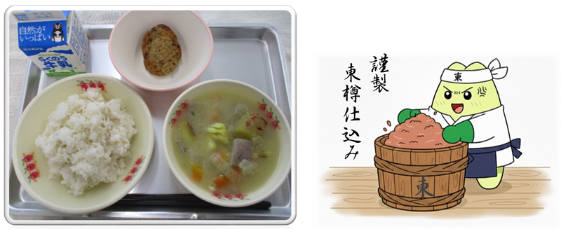 今日は、寒空にぴったりの、体の中から温まる献立でした。メインの野菜豆腐ハンバーグは、豆腐とひき肉、野菜が入ったヘルシーな一品です。放送当番さんからは、「ご飯と合ったので、2個お代わりしました」という、食欲旺盛な感想が聞かれました!お味噌汁の「みそ」は、大豆を発酵させて作る調味料です。麦ご飯と一緒に、バランス良く美味しくいただけましたね!( )^_^( )