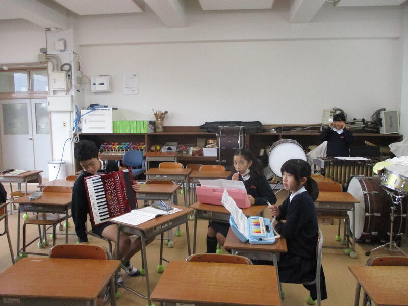 本日(12/12)、5・6年生が合奏の練習をしていました。