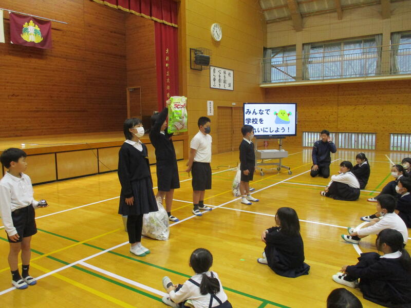 本日(12/15)の児童集会では、環境・栽培委員会が発表しました。